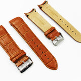 Alligator Curved Genuine Leather Watch Strap, 24MM, Padded, Black Stitched, Regular Size, Black Color, Silver Buckle, Watch Band Replacement