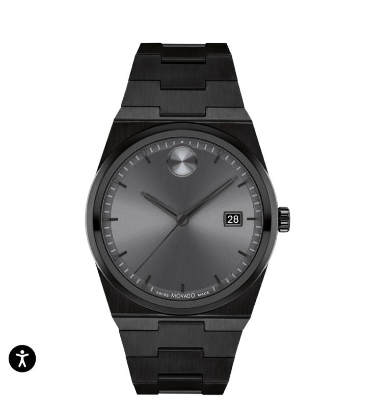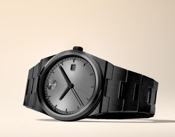 This 40mm watch features a gunmetal sunray dial, black hands, and our signature dot at 12 o'clock.